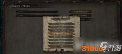 参考FS社的前作游戏《只狼》,玩家进入游戏后可以找到菜单。在菜单中玩家选择LANGUE。