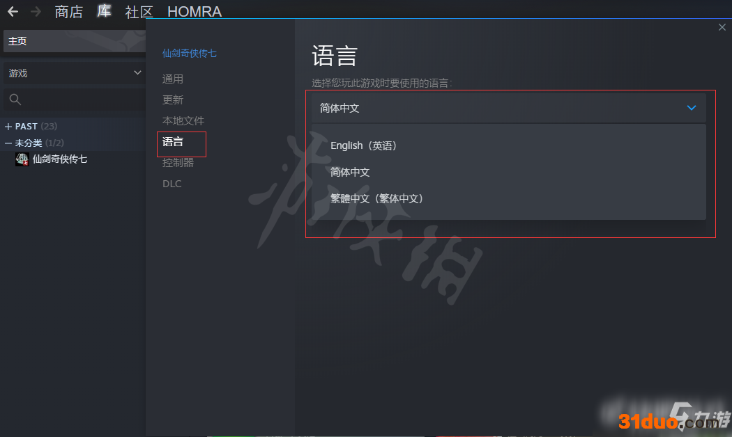 此时玩家就能在属性页面中找到语言选项,在该选项中选择简体中文即可完成语言设置。