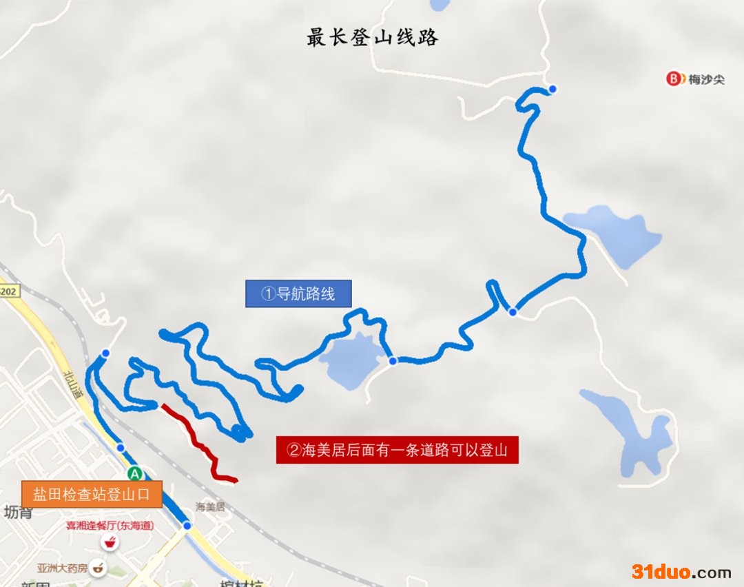 三、盐田检查站登山口(最长距离但是最好走线路)