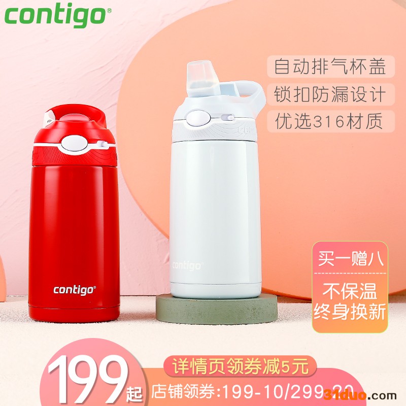 Contigo康迪克锁扣保温杯保冷儿童成人吸管杯防漏便携包包杯水壶