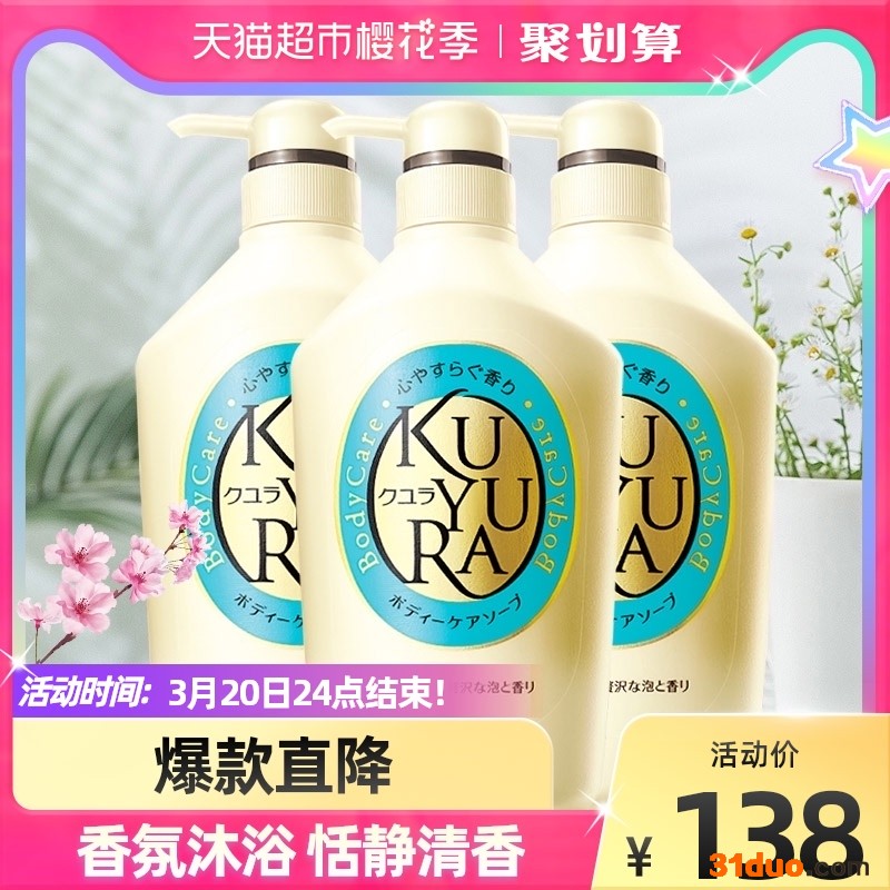 日本进口可悠然恬静清香沐浴露滋润温和保湿清洁550ml*3家庭装