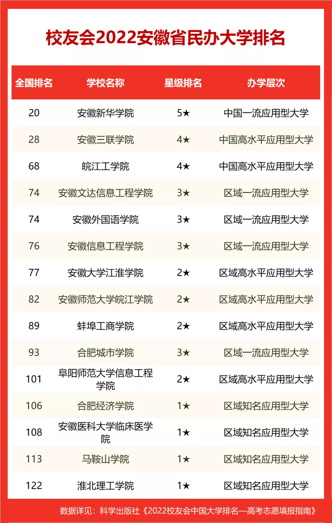 安徽新华学院雄居2022安徽省民办大学排名冠军,安徽信息工程学院跻身前10强