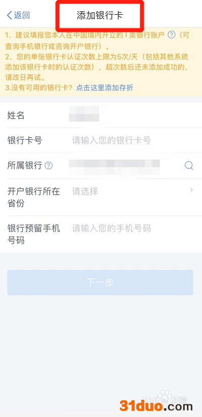 8、最后添加”银行卡号“”所属银行“”开户行“”预留手机号“即可。审核通过,退税款就会到银行卡上。