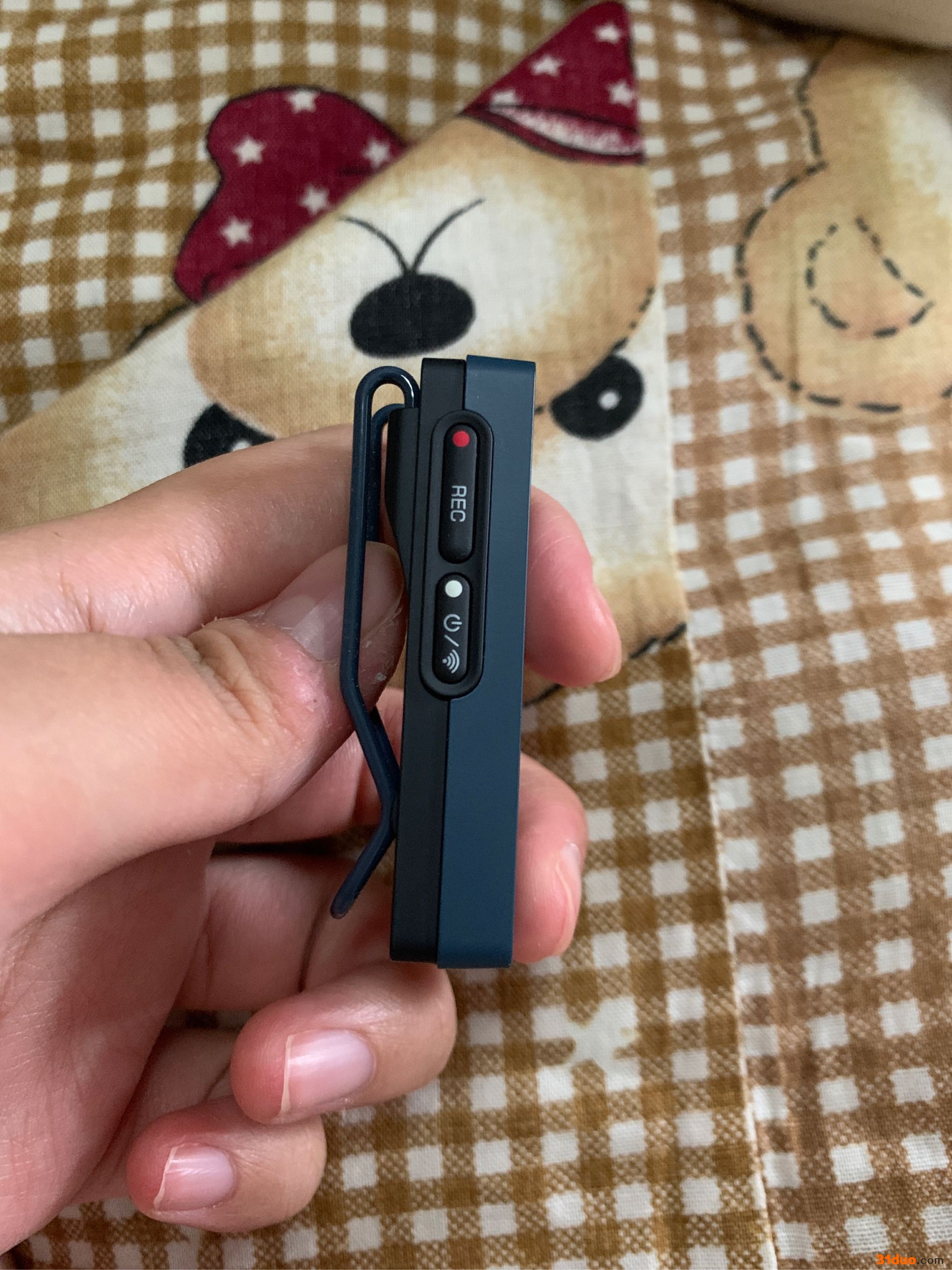 搜狗录音笔侧面只有一个开关键和一个录音键,操作简单,录音键可以提示四种颜色,提示机器的各种状态。