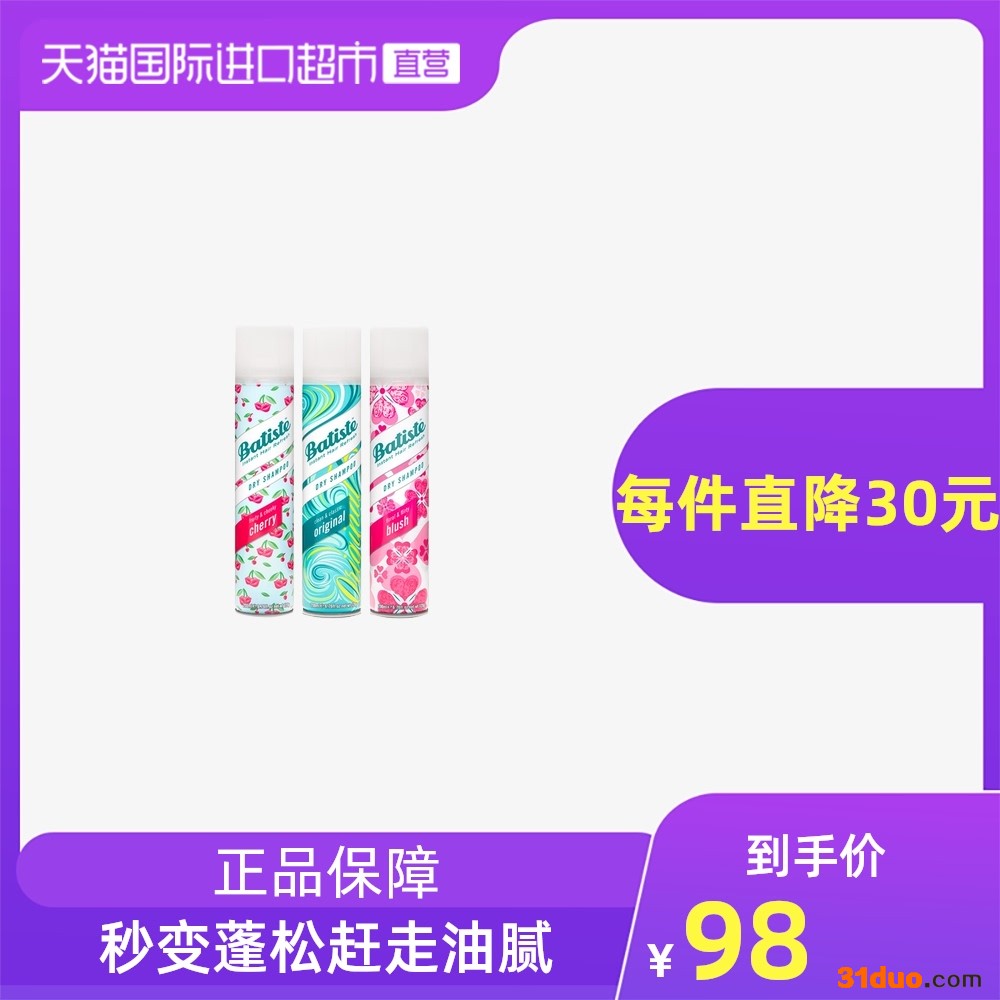 碧缇丝干发喷雾免洗头喷雾Batiste控油蓬松懒人去油神器2瓶*200ml