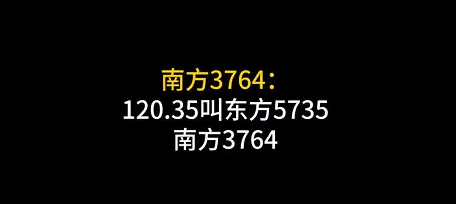 “东方5735,广州叫你;南方7654,在120.35,帮忙再叫一下东方5735;东方5735,南方3764,121.5叫……”