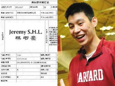 前几年,有一名女商人已申请注册“林书豪”的中英文商标,并已批准公告,并且仅花费了4460元。这家体育公司申请的商标为“Jeremy S.H.L 林书豪”,申请了25和28两大门类。其中,第25类主要是服装、鞋,帽等,28类指运动球类、游戏机、玩具等等,专用权限为2011年8月7日到2021年8月6日。
