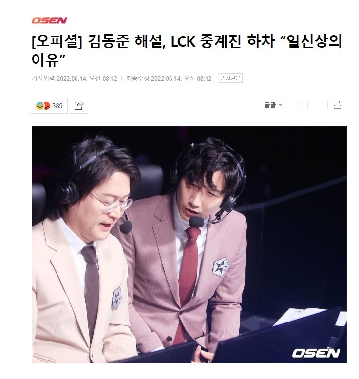 根据韩网粉丝讨论,此前LCK解说金东俊凭借其诙谐风趣的解说风格广受观众喜爱。但是疑似在MSI中因未念选手ID,被T1粉丝爆破,后续被迫声称:因“个人原因”宣布退出LCK官方解说阵容。