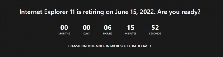 目前距离微软正式永久关闭IE浏览器还剩六小时15分钟。