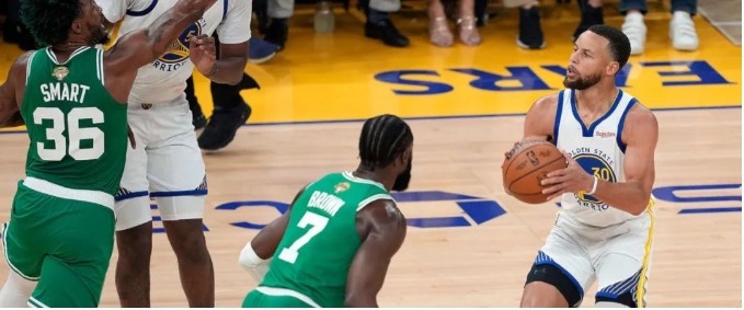 第一节让库里进了6记三分,第四节自己投进了9记三分,塔图姆全场17中3,但送出了13记助攻,这些数据都很极端,甚至不像在打总决赛。凯尔特人起手防库里防得不好,不在于他们蹲坑防库里,而是跟勇士一样,没有把强度拉满,在退防和换防中会犯错,漏给库里太好的机会。