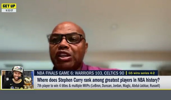 直播吧6月18日讯在昨天进行的NBA总决赛G6中,勇士客场击败凯尔特人,总比分4-2夺冠,这也是库里的第四个总冠军。今天,巴克利在节目《GetUp》中谈到了库里目前的历史地位。他说:“这对我来说会很痛