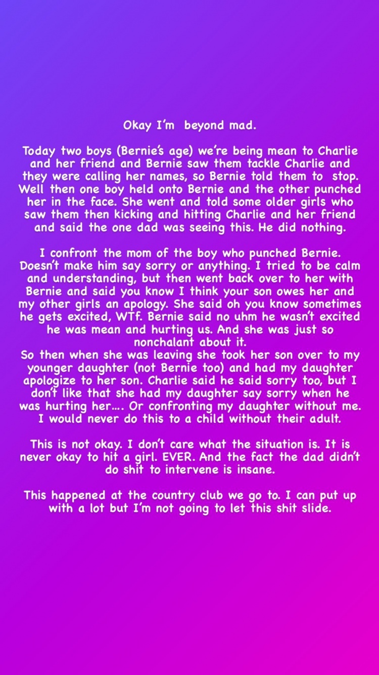 今天,海沃德老婆更新了Instagram story,控诉自己的女儿被欺负的行径。
