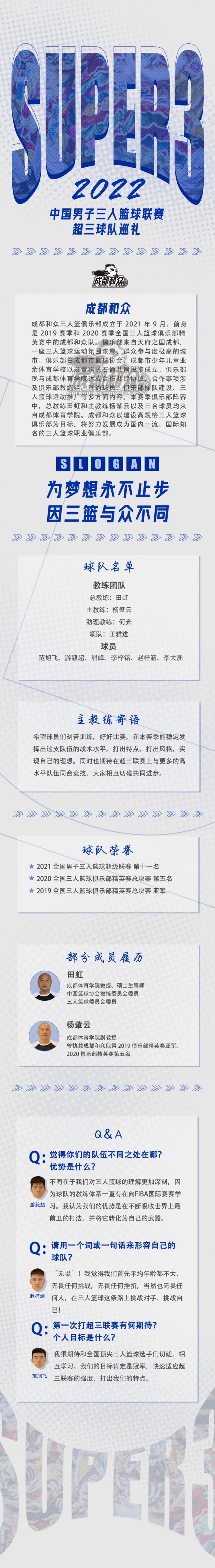 关注过此前的三人篮球俱乐部精英赛的球迷或许对成都和众并不陌生,这是一支曾经在俱乐部精英赛中取得过总决赛亚军的优秀球队。他们作为上赛季联赛中平均年龄最小的大学生球队也给球迷带来了不少记忆深刻的瞬间。正如
