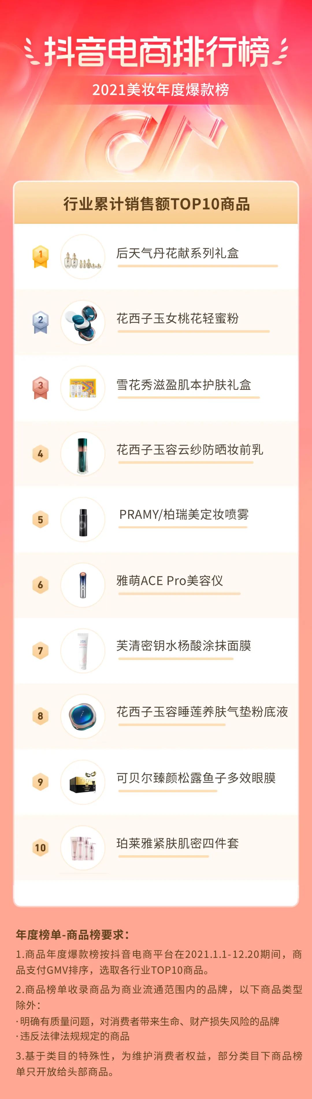 美妆赛道,既有大品牌影响力的体现,也有“国潮”实力的折射。在商品榜,我们看见,花西子、珀莱雅、韩束等基于新技术的产品层出不穷,在美妆行业主推的D-Beauty活动中,打造数亿声量,形成了科技护肤、情绪美学和国潮文化内容大爆发。同时,榜单商品也是达人们带货的热门。