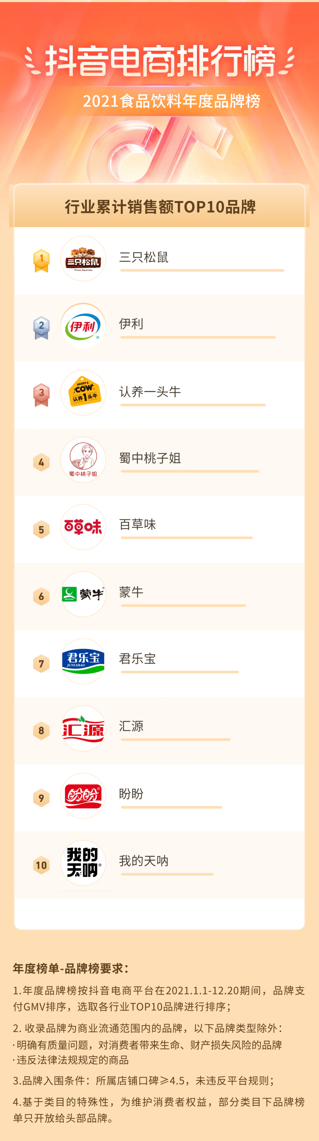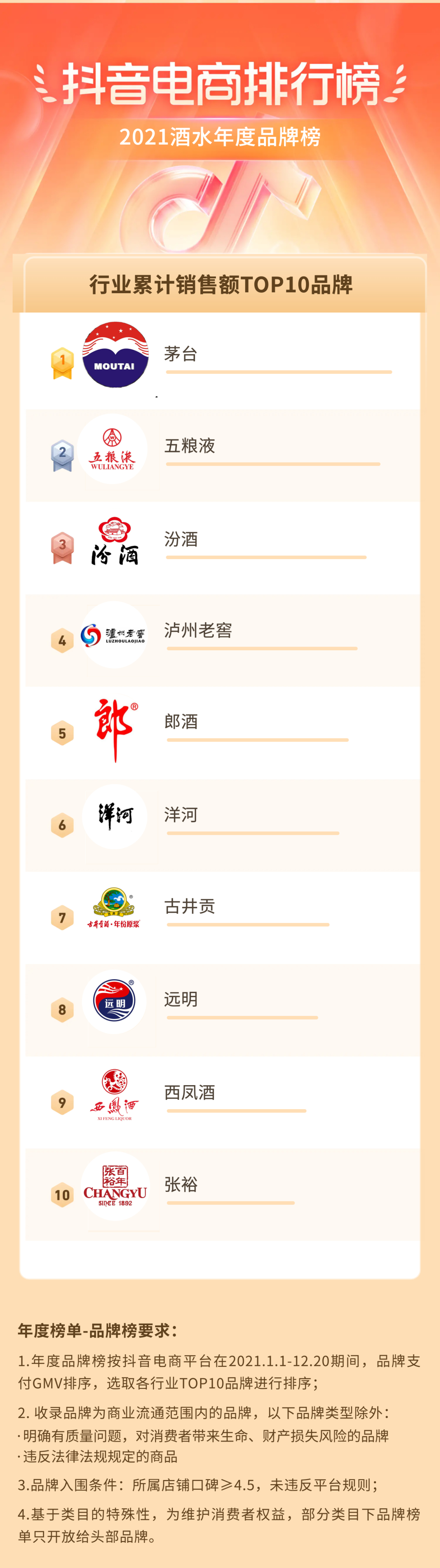 在酒水赛道,大品牌独占鳌头,茅台集团更是有多个单品杀入爆款Top 10。还纠结喝什么?看抖音电商排行榜,感受茅台、五粮液、汾酒等一众名酒醇厚的滋味!2021年酒仙网在行业IP活动中销售GMV6200万,全年合作带货达人700多位,成为酒行业商家典范。