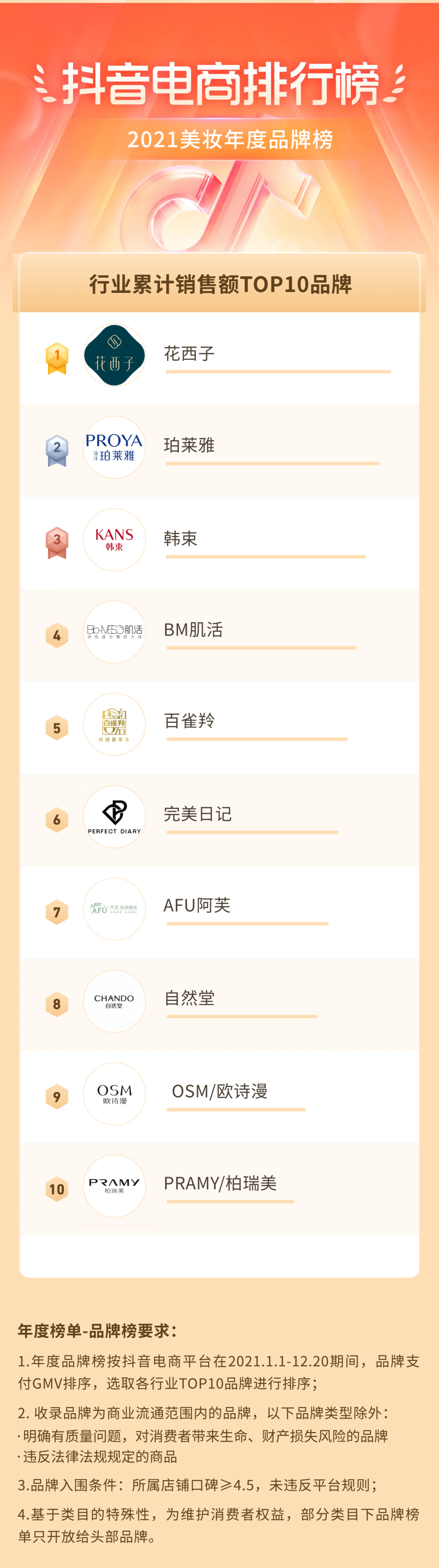 《2021抖音电商“抖in爆款榜”趋势洞察报告》调研数据显示,72%的抖in爆款榜用户认为榜单官方推荐,值得信赖,榜单快速建立起了性,同时也成为了上榜品牌品质的展现平台;先发优势玩转爆款,赋予每个商品引爆可能,不仅是已有爆款,抖音电商排行榜更助力品牌孵化未来爆品;打通多链路经营周期,促进商家冲榜热情,并实现长线的店铺、商品、爆款商品的增长。我们知道,每个消费者,心中都有一张属于自己的品牌、商品榜单,而品牌也通过一年的努力,展现出了一张张亮眼的成绩单。