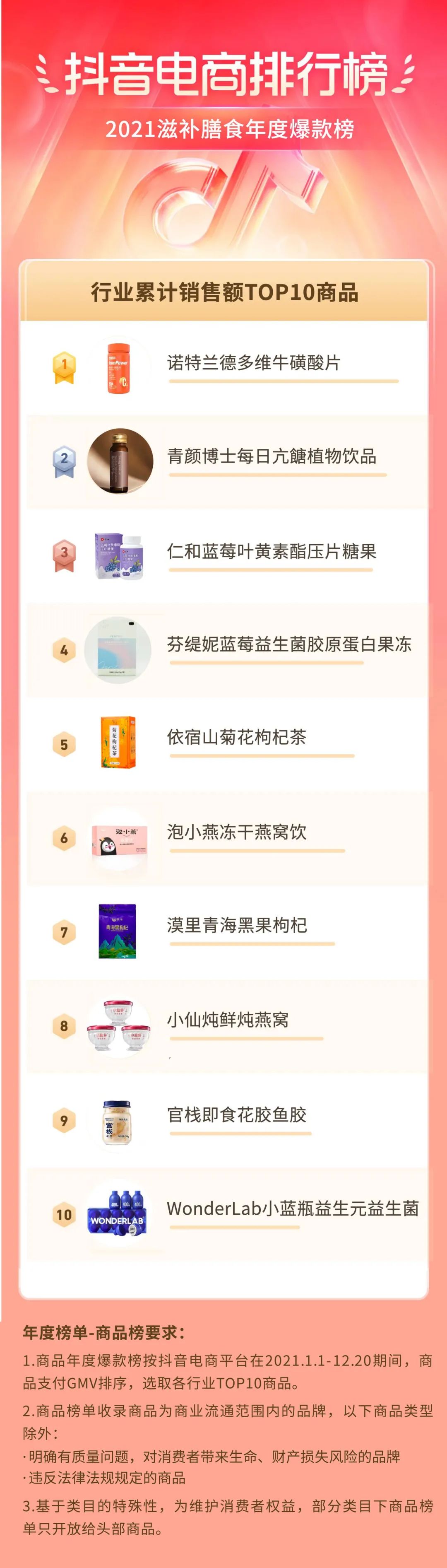 在滋补膳食赛道,传统品牌焕发新的生命力,而新品牌为人们的健康打开了新可能,我们看到诺特兰德、WONDERLAB多次露面,也看见了“仁和”这类“爷爷辈”传统品牌与年轻消费者的兴趣碰撞。在2021年9月“抖音新锐发布”活动中,官栈一周内销售额达到了622万元,掀起一波即食花胶风潮。