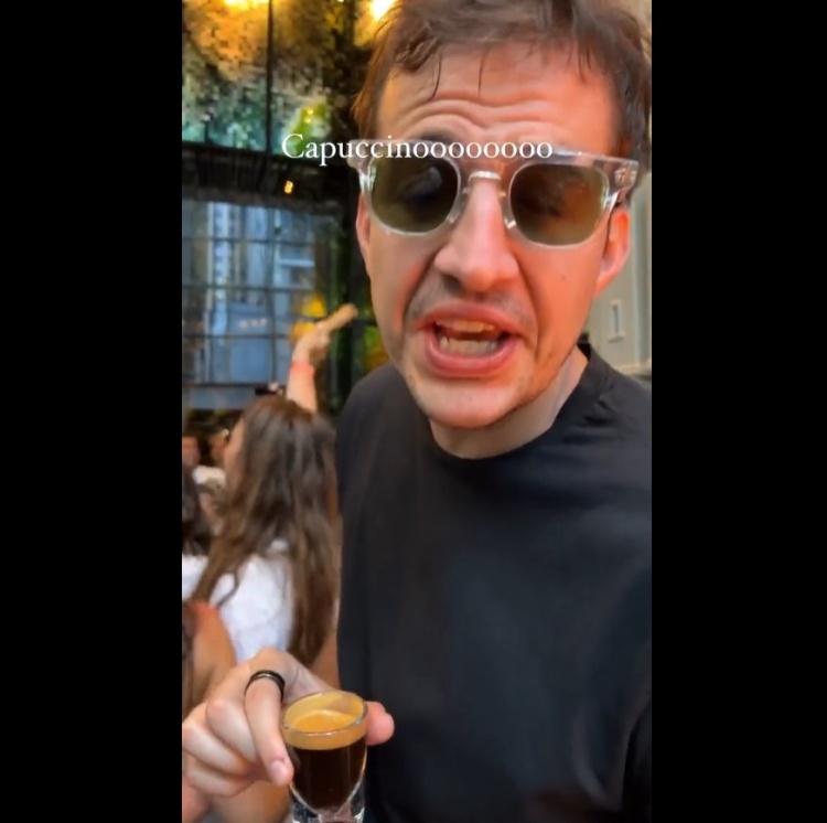 有趣的是,勇士众将都在喝酒,而别老师别具一格,在饮上一杯卡布奇诺~
