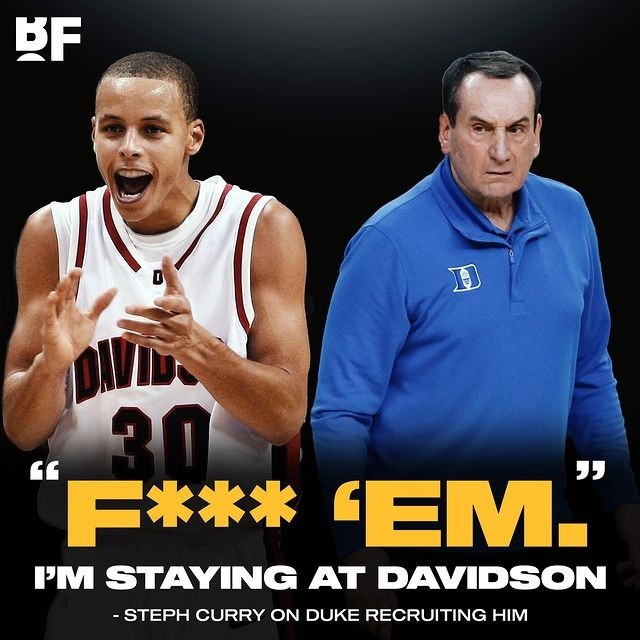 戴尔表示大一结束后杜克试图招募库里,后者拒绝了。“他告诉我,老爸,他们那时候(高中毕业)不要我,现在我也不要他们,去他们的(F**k them),我要留在戴维森。”