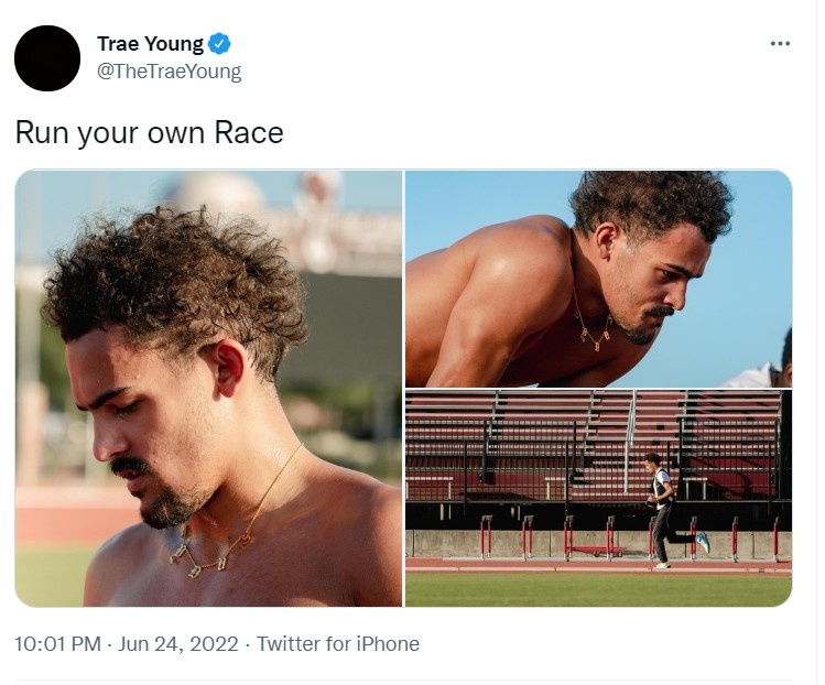 特雷-杨更推写道:“跑属于你自己的比赛。”