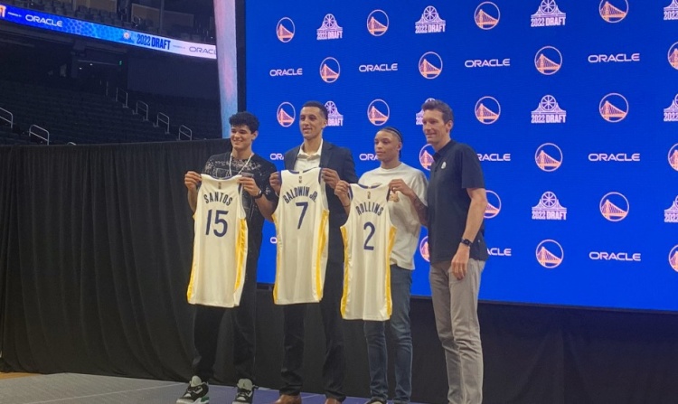 6月25日讯今日凌晨勇士为今年选来的三位菜鸟举办了见面会。