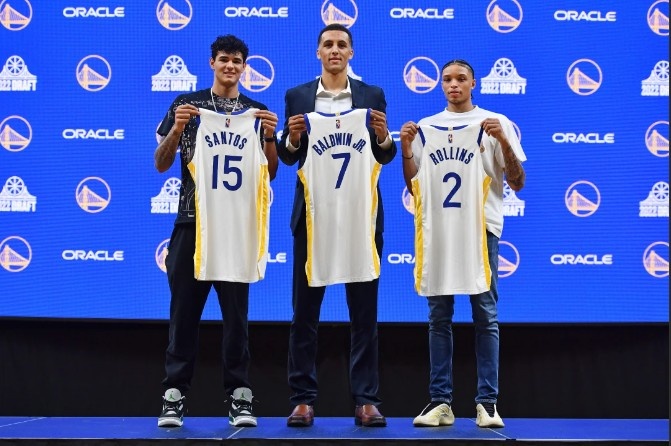 在昨天的2022年选秀中,勇士在首轮第28顺位选择了小鲍德温,随后打包51号签和200万美元现金,换来老鹰第41顺位的莱恩-罗林斯。最后,勇士在第57顺位选择了盖-桑托斯。不出意外的话,未来数年,这3个名字将时刻萦绕在勇士球迷耳畔。