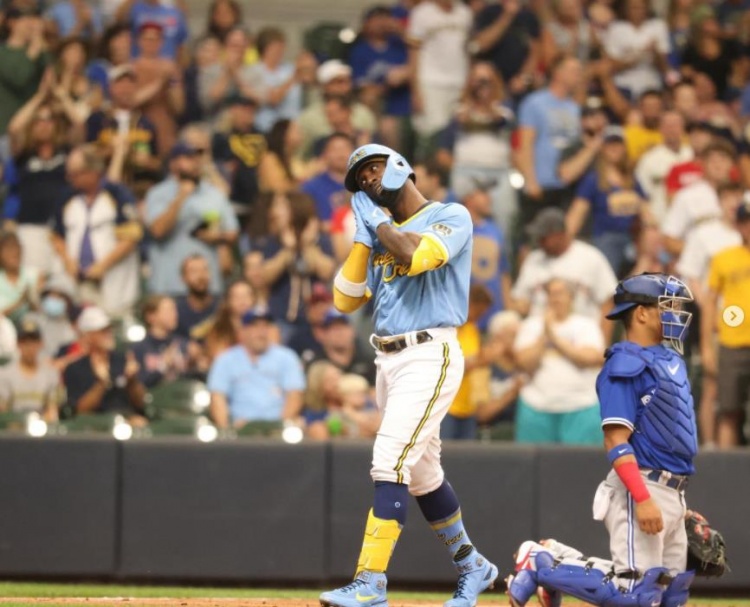6月26日讯今天,美国职业棒球大联盟密尔沃基酿酒人队的老将Andrew McCutchen在击出一记本垒打后做出了库里标致性的“晚安安”庆祝动作。