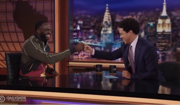 6月28日讯追梦格林今日参加了特雷弗-诺亚主持的“每日秀”脱口秀节目,期间他们谈到了勇士队今年的总冠军。