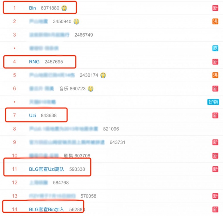 两家电竞俱乐部的重磅转会消息成为了截至目前为止,本次转会期影响力最大的一笔交易。尽管消息公布时已是深夜,但随着其迅速发酵以及电竞一直以来在社交平台上的高互动量,相关话题立刻冲上热搜榜,当时话题榜前十五关键词中有三分之一是该事件词条,而直到撰稿前,仍有零星话题挂在热搜榜。