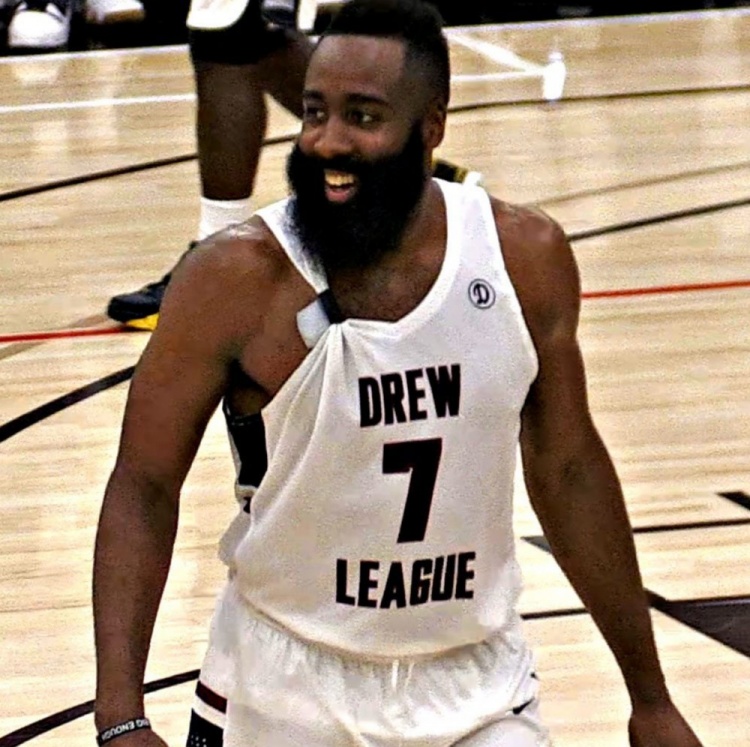 耐克赞助德鲁联赛时 哈登将其LOGO卷起来