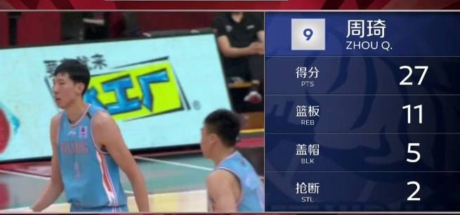 截至发稿时,周琦已经16投12中砍下27分11板,新疆领先20分。