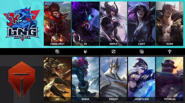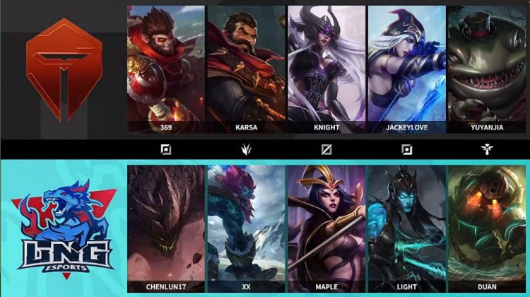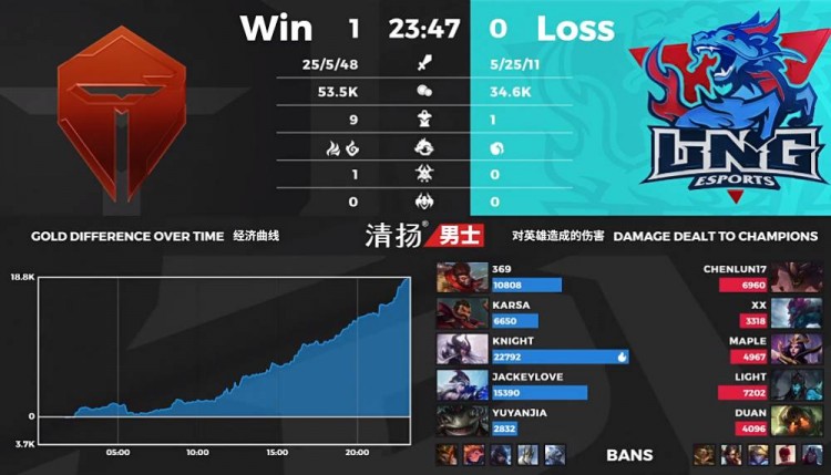 【22:55】中路高地下双方开团TES轻松击杀LNG四人后一波结束比赛。