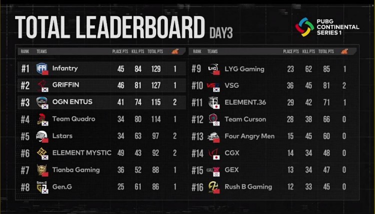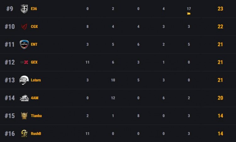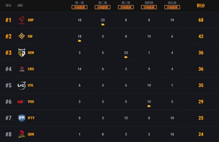 总积分榜上,iFTY领先优势被进一步缩小,目前仅以129领先GRF两分排名第一,ENT以115分排名第三。