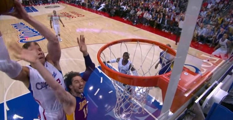 2012年4月5日,快船在主场迎战湖人。比赛刚开始不久,弗耶左侧底角空位三分打铁,格里芬“后排插上”硬生生骑扣加索尔,把西班牙人扣翻在地!而第三节进行到8分钟左右时,快船的进攻回合,卡隆-巴特勒右侧和格里芬打挡拆,后者顺下接球面对加索尔强势完成隔扣!湖人中锋再遭羞辱倒地。