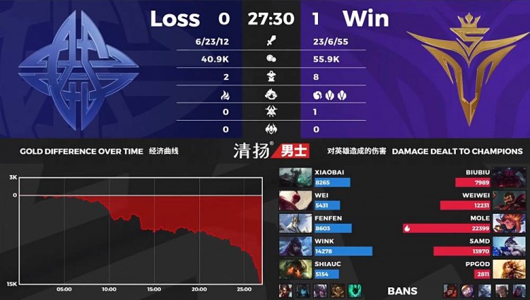 【27:05】V5一波推进团灭了ES后结束比赛。