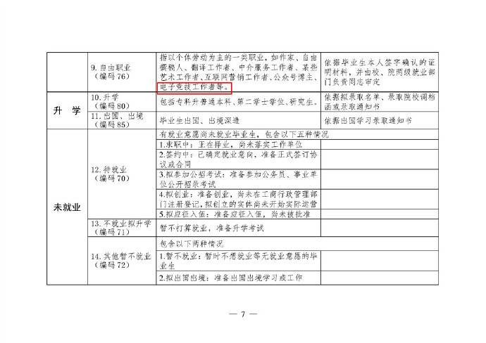 新的高校毕业生就业统计相关指标的最大亮点在于“自主创业”和“自由职业”方面,其中,自由职业的范围加入了电子竞技工作者。