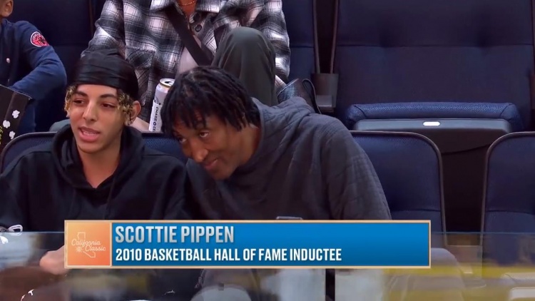 直播吧7月4日讯夏季联赛加州精英赛湖人对阵勇士的比赛正在进行中。NBA官推晒出公牛名宿皮蓬在大通中心看球的视频,现场给出的介绍字幕为:2010年NBA名人堂成员。本场比赛,代表湖人首发出战的小皮蓬表现