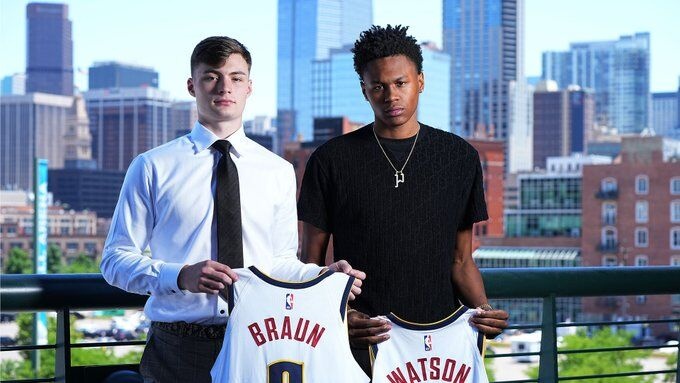 直播吧7月4日讯 掘金总经理卡尔文-布斯今天宣布,球队已经签下了两位首轮秀克里斯蒂安-布劳恩和佩顿-沃特森。