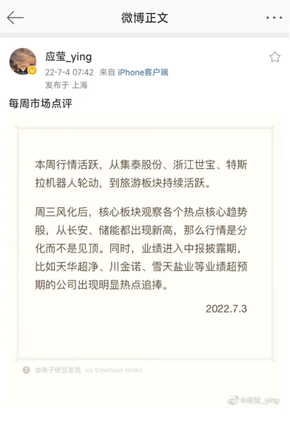 应莹此次发声,网友更关心的是“股评是否是徐翔先生写的?”“徐翔是否有给过参考?”等问题,应莹对媒体表示,内容是自己发的,自己每周也都会复盘,而且以后每周也都会发一篇。同时,应莹还表示,自己现在和徐翔没有联系。对于是否有相关资质,应莹表示,自己原来就是从业人员。