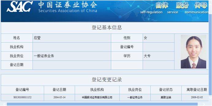 对于应莹的从业人员资质,银柿财经记者通过中国证券业协会公开信息查询到,目前其从业职格处于离职注销状态。而根据相关规定,应莹在公开平台发表关于市场分析的言论是否违规还有待商榷。