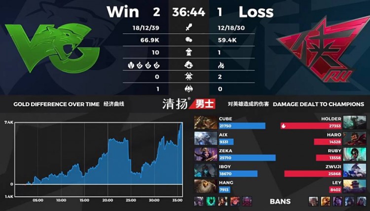 【34:33】VG开启远古龙,凯南侧翼绕后进场留住千珏和锤石,VG装备碾压团灭RW一波结束比赛。