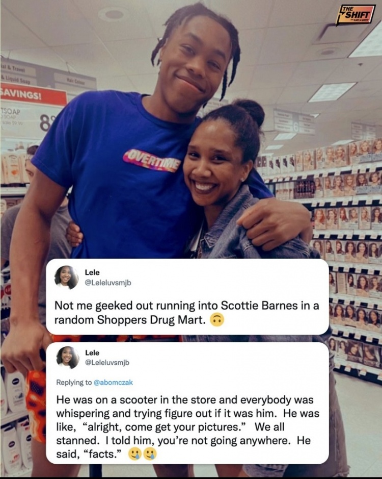 直播吧7月5日讯近日,有位国外网友分享了她偶遇猛龙球员斯科蒂-巴恩斯的故事。这位网友发推写道:“在启康药房偶遇了巴恩斯,傻了吧唧的那个人不是我