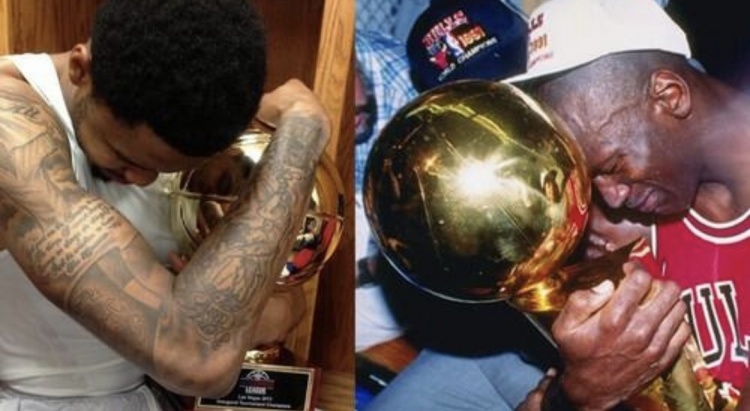 直播吧7月5日讯 近日,有网友晒出一张图片,左边是贝兹莫尔拿到夏季联赛冠军,右边是乔丹。