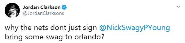 “篮网为什么不签下尼克-杨呢?给奥兰多带去点酷劲儿。”克拉克森写道。