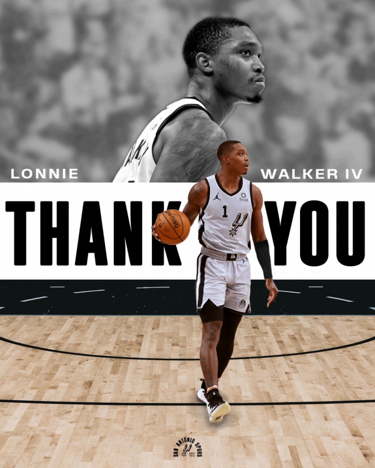 马刺队官推发布了一组照片并写道:“朗尼-沃克,谢谢你所做的一切。”