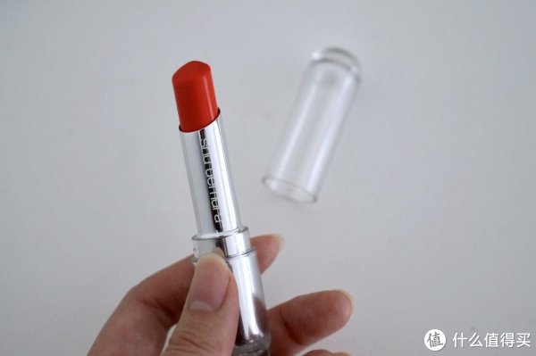 我的通勤妆必备口红,非常滋润不需要唇膏打底,偏红的橘色系不挑肤色,上脸显白,持久度中等,碰到油腻的食物会掉色,但可能因为它的颜色和我的唇色本身比较接近,所以掉一点之后也不尴尬,有时候偷懒一天不补妆也就这么过去了~