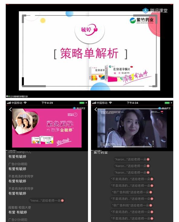 毓婷作为学院奖战略命题,首次线上直播吸引了不少同学守候观看。毓婷命题企业代表、紫竹药业高级媒介经理卢雯通过实名制云课堂与华东地区高校学子牵线,千余学子同时在线聆听品牌策略解读,弹幕刷屏、送花互动好不热闹。