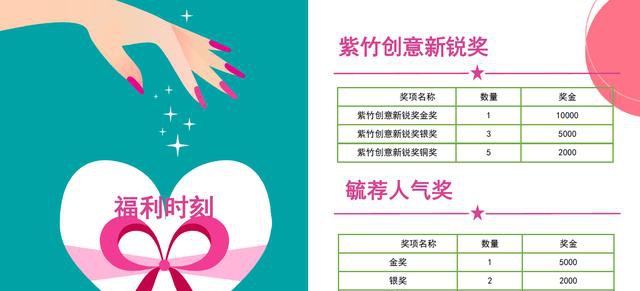 为了鼓励同学们的创意梦想,毓婷也不负期待,拿出了超级福利!在组委会评选的奖项之外,毓婷命题特设紫竹创意新锐奖和毓荐人气奖,一件作品将同步到三项大奖的评选,奖金丰厚一定不能错过!