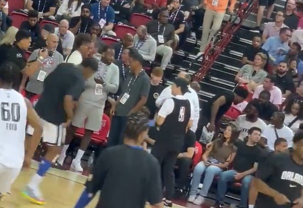 直播吧7月8日讯 火箭对阵魔术的夏季联赛正在进行中,有球迷拍到前火箭球员约翰-沃尔与杰伦-格林以及火箭主教练塞拉斯在场边一同观战。