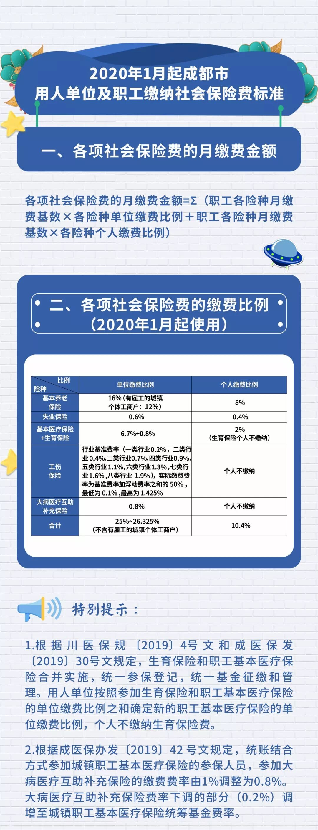 1.根据川医保规[2019]4号文和成医保发[2019] 30号文规定,生育保险和职工基本医疗保险合并实施,统一参保登记,统一基金征缴和管理。用人单位按照参加生育保险和职工基本医疗保险的单位缴费比例之和确定新的职工基本医疗保险的单位缴费比例,个人不缴纳生育保险费。
